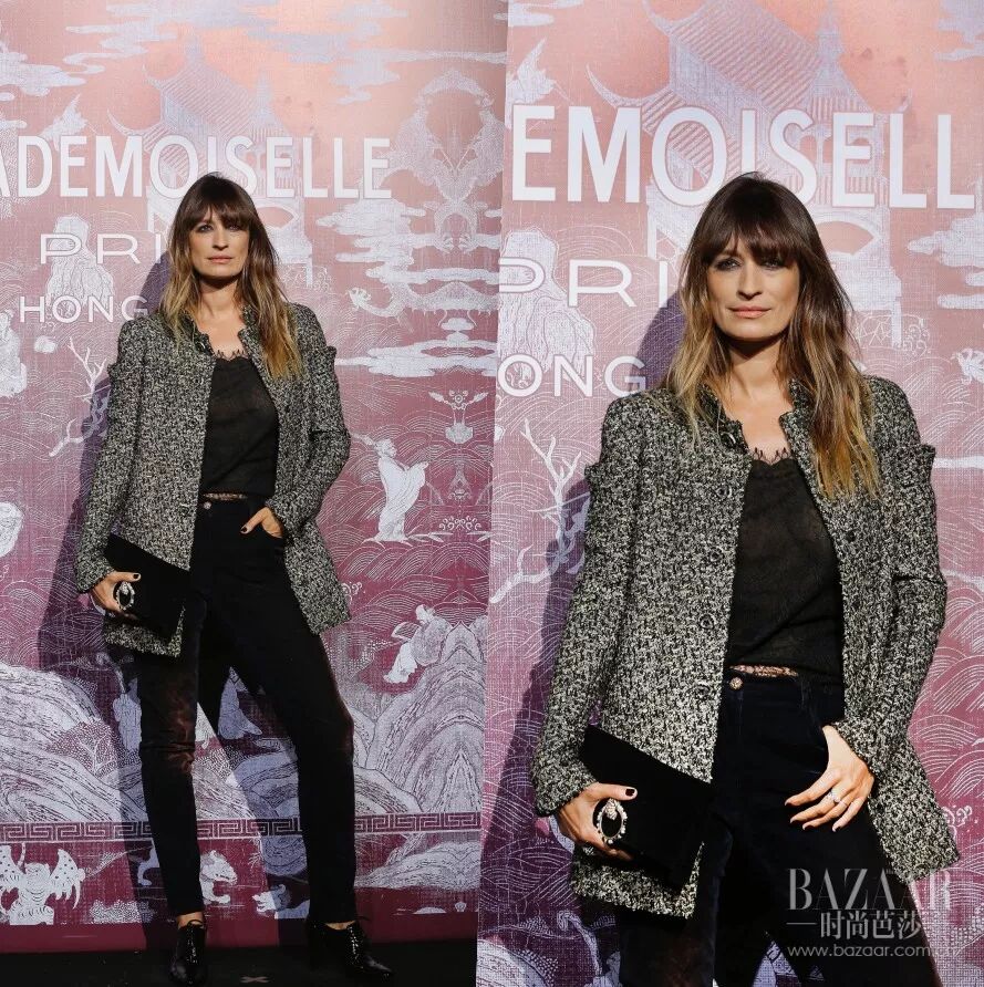 名模Caroline de Maigret则采用纯黑搭配亮眼编织外套,潇洒帅气~