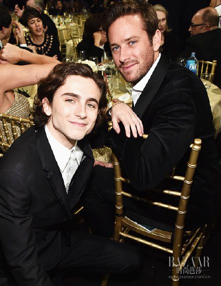 颁奖礼内场“锤哥”Armie Hammer和“小甜茶”Timothee Chalame合影,真的很甜哦~