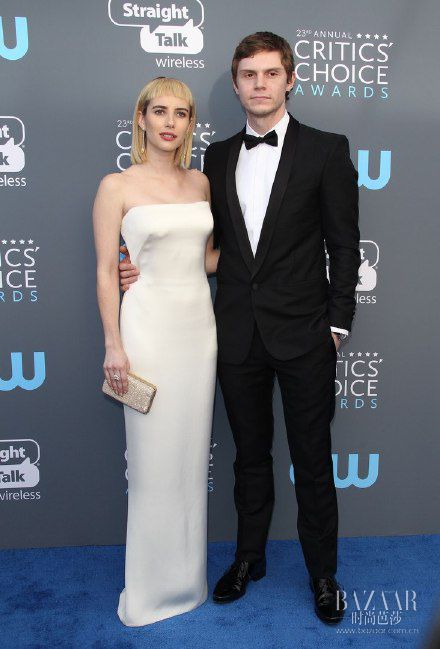 甜蜜情侣Emma Roberts和Evan Peters合体亮相,艾玛这发型太抢眼了,雪肌与白裙真好看!