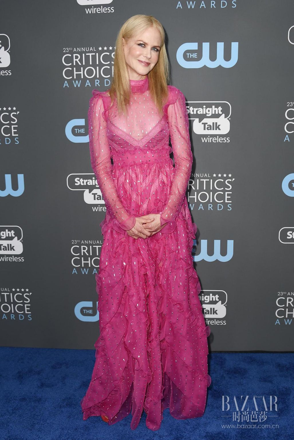 “不老女神”Nicole Kidman身穿Valentino2018早秋系列裙装亮相,并凭借美剧《大小谎言》获得限定剧最佳女主角奖项!