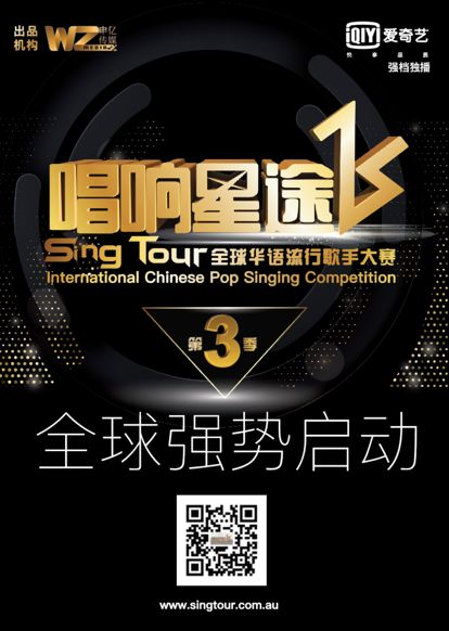 Sing Tour《唱响星途》全球华语流行歌手大赛,是WZ申亿传媒旗下独立出品的音乐类品牌性赛事。经过两年的积累和品牌发展,该赛事已经成为最具规模的海外华人音乐类品牌赛事。2019 Sing Tour《唱响星途》全球华语流行歌手大赛第三季实现了全面升级,并将首次以爱奇艺独播网综的形式与观众见面。