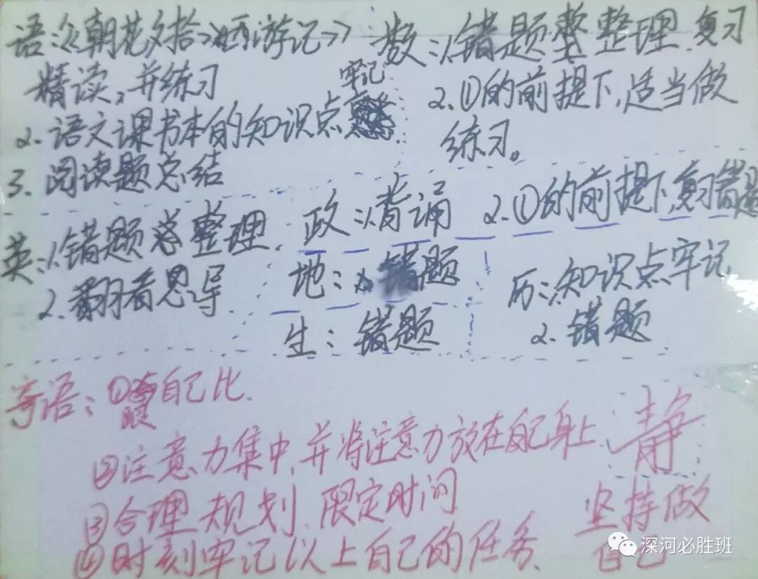 3.下周各学科进入全面复习阶段,请同学们,做好各自的复习规划和时间管理,把该用的时间用好,注意方法和习惯,提高学习的效率是关键。