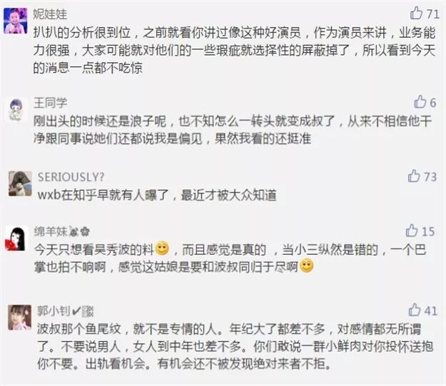 看看网友们的留言一点都不惊讶,就知道大家都非常清楚吴秀波就是个“玩咖”的事实。