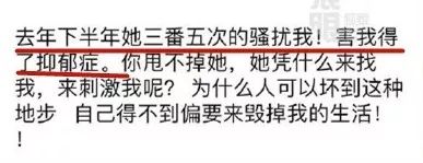 第二点,陈小姐说去年下半年,“小五”张芷溪曾多次骚扰她,害得她都抑郁了。