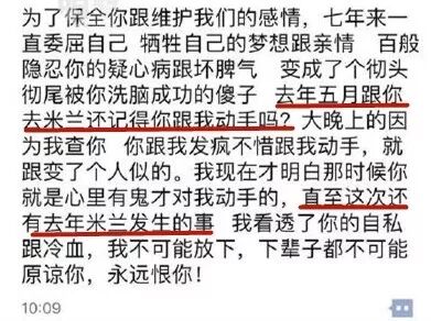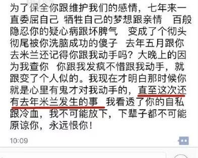 陈小姐在爆料的最后,提到“去年以及这次的米兰之行,我永远不会原谅你!”。