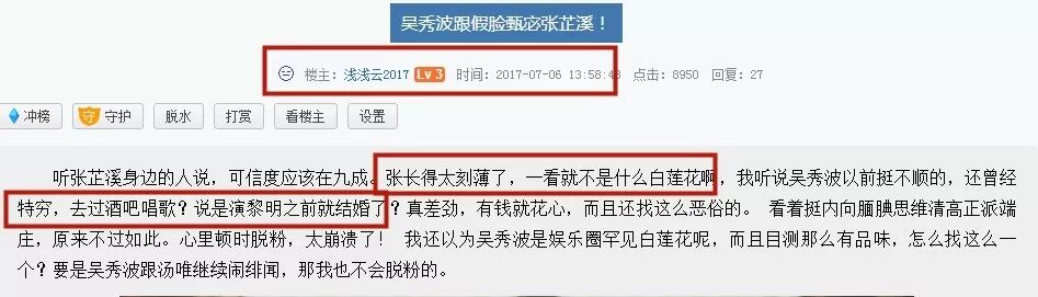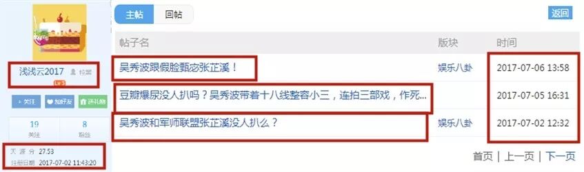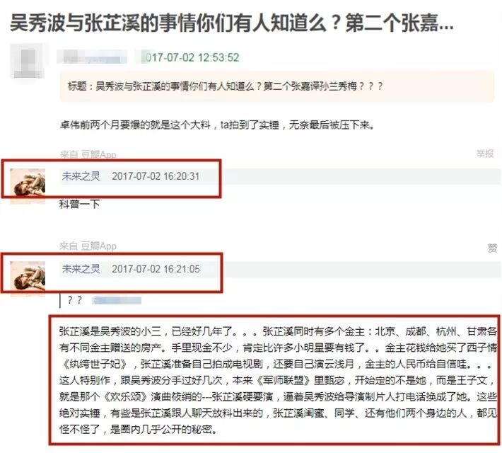 细思极恐的是,在这两大网站上,正是同一时间(去年7月初)出现了相同的张、吴奸情的爆料!