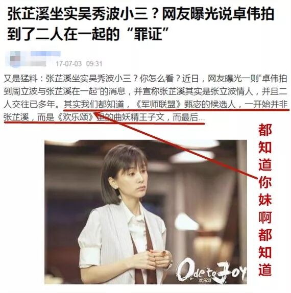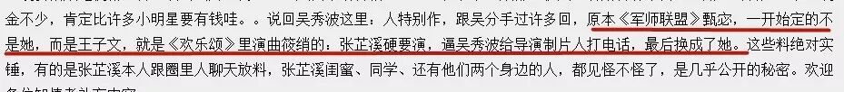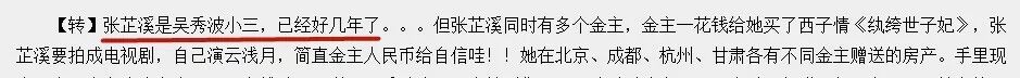 第一处就是,“张芷溪是吴秀波的小三,且已经好几年了”。