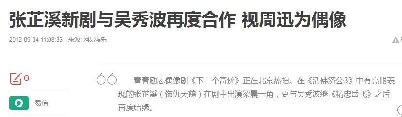 要知道,吴秀波跟张芷溪第一次合作,是在11年的11月拍摄《岳飞传奇》。