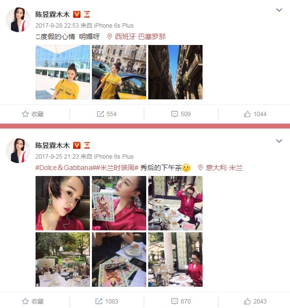 8月份——没发过微博;9月份——又跑去国外看时装周;