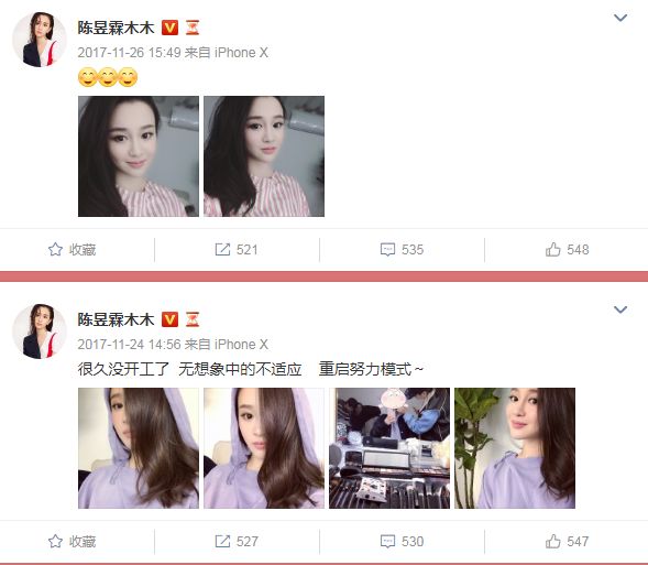 然鹅,就在她的这条消息爆出前一个小时,陈小姐的微博上,依然放的是特喵的自拍!自拍!自拍!