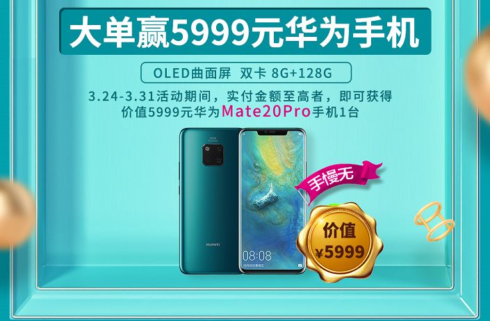 2、活动期间实付订单金额最高可获得华为Mate20 Pro一台