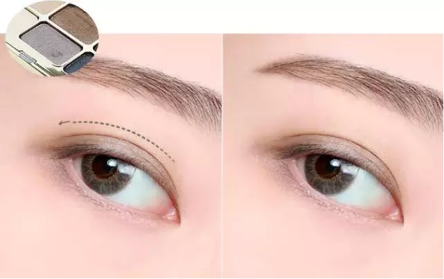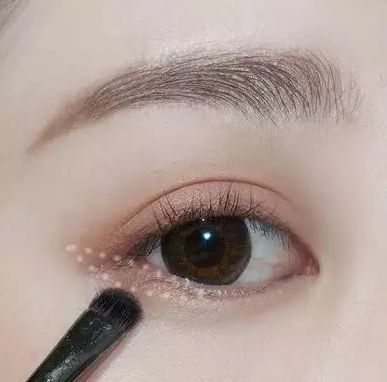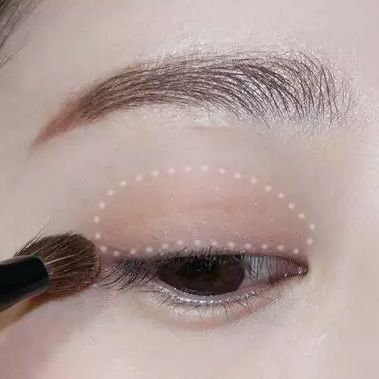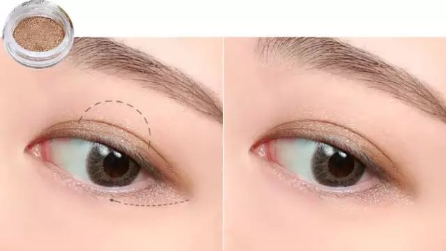 Step 2:用棕色珠光眼影在上下眼皮晕染;