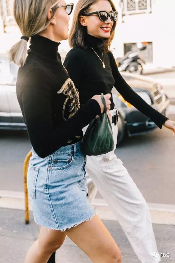 单穿黑色高领衫就是好身材仙女的福利呀,不论是搭裙子还是裤子,上身的曲线都能完美显现,哪怕是一身黑,回头率也是百分百!