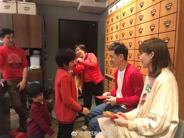 6日,林志颖在微博上罕见晒出了孩子们的拜年照片,他和老婆做在前面拿着红包,大儿子Kimi站两人面前想要红包,Kimi穿的大红色衣服,林志颖也是穿的红色衣服,拜年现场真的十分喜庆!