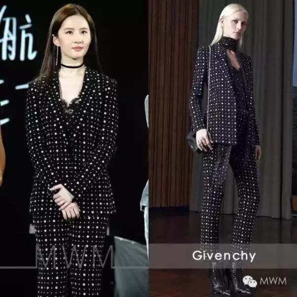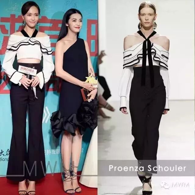 对了,唐嫣也穿过这一件的相似款,搭配的是黑色裤子,又有不一样的感觉。