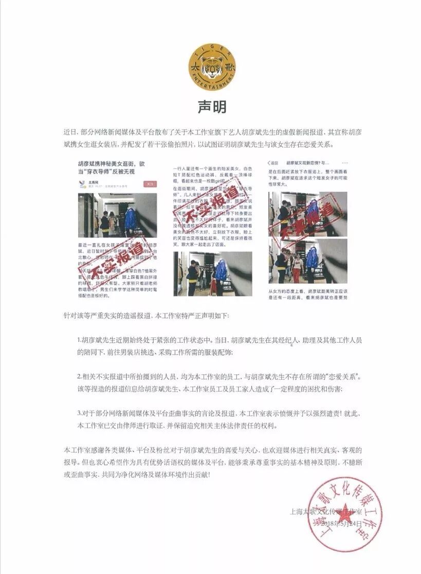 事件一经发酵,胡彦斌工作室发声明表示被拍摄到的是工作室的员工。