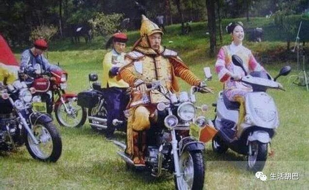而老版本的《还珠》就更有意思了,皇阿玛霸气的骑着摩托车啊,说好的骑马狩猎呢?这也实在是让人太意想不到了吧!