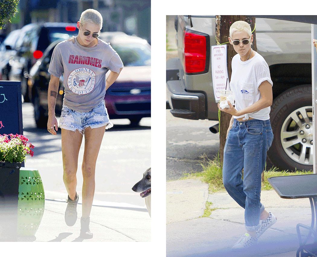 光是脸臭效果还不够,寸头、假小子风的打扮把她的帅气又加强了一遍。她平时出街基本上是牛仔裤T恤运动鞋三件套。
