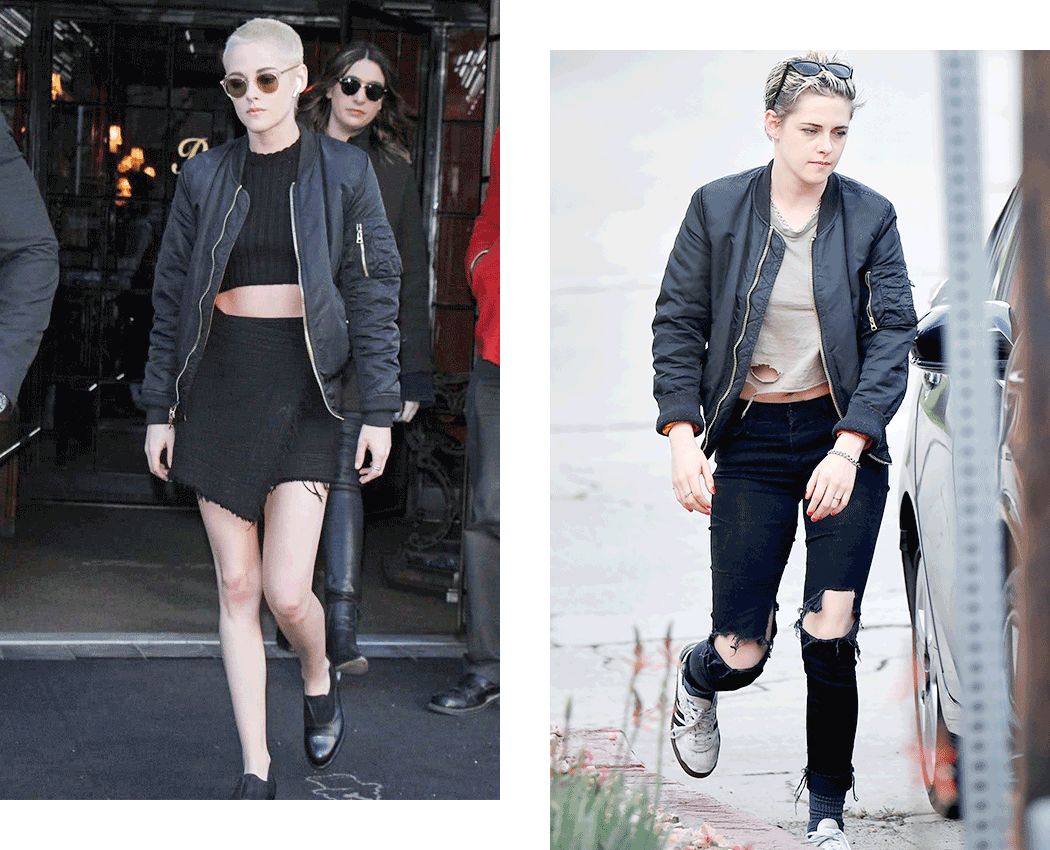 除了穿衣服方面,她接的电影也越来越Stewart。她前阵子演了新版《霹雳娇娃》,女杀手的臭脸和杀气根本都不用演,站在那里就是了。
