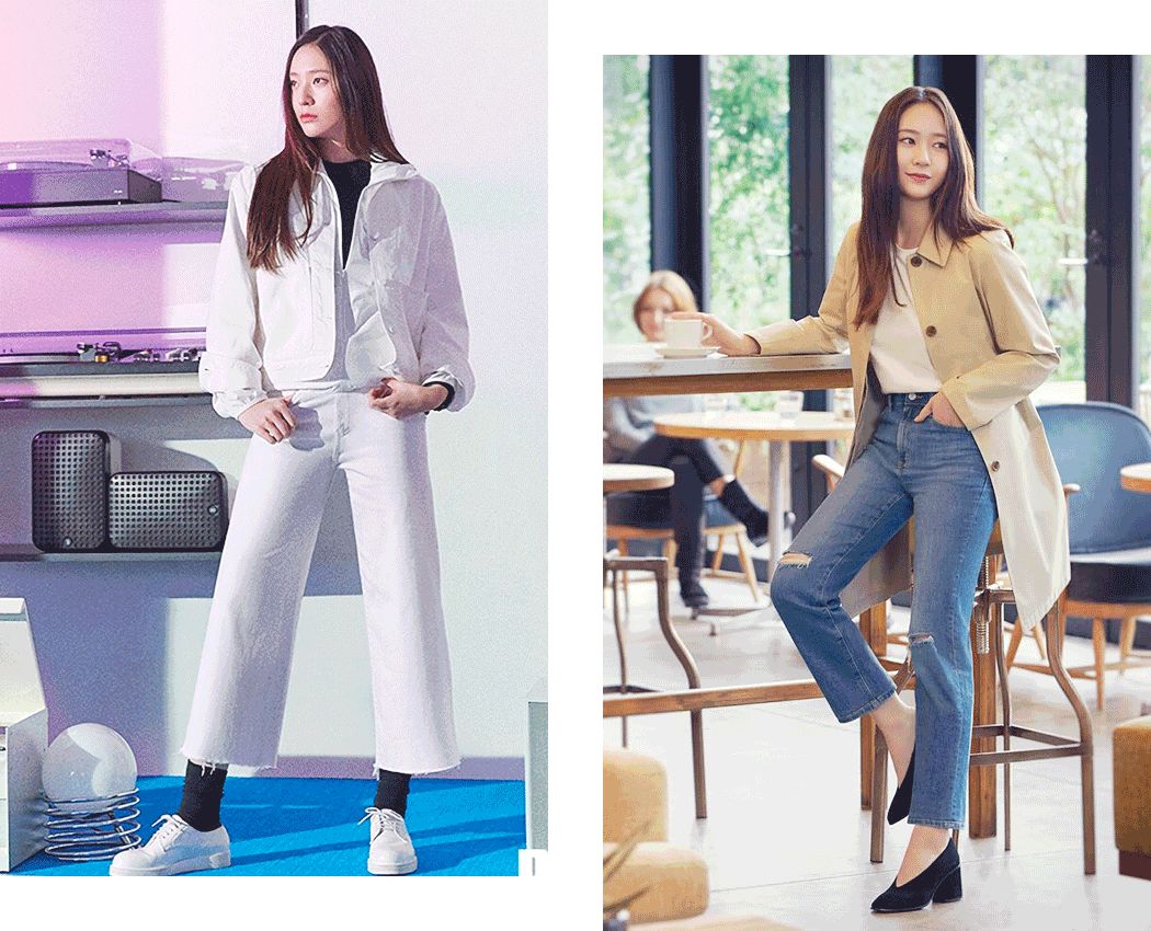 她从小就喜欢经典简单的look,不喜欢穿带着品牌logo的衣裳。平时穿得最多的就是Tee+牛仔裤。