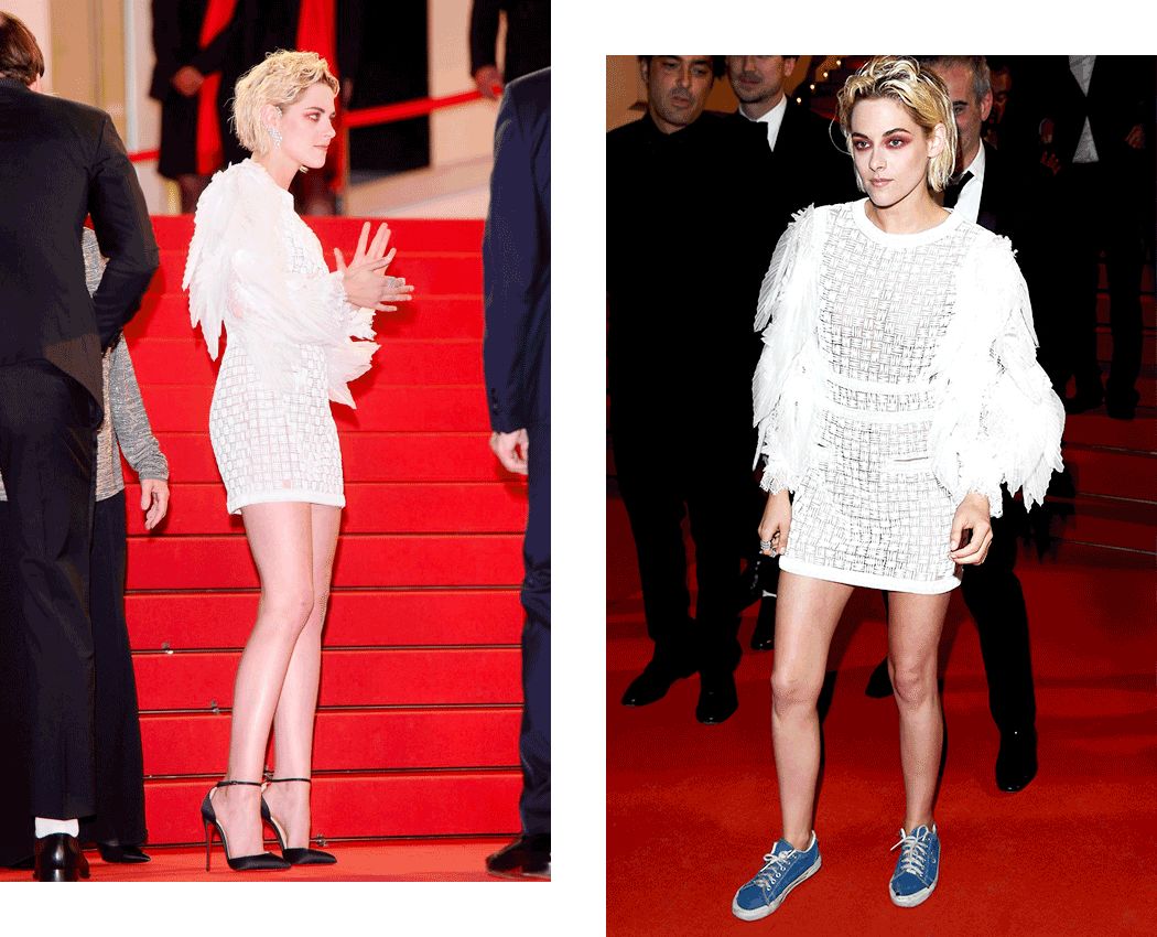 在红毯上,她经常走一半就换运动鞋。造型师和化妆师总是得求着她穿高跟鞋、涂口红……