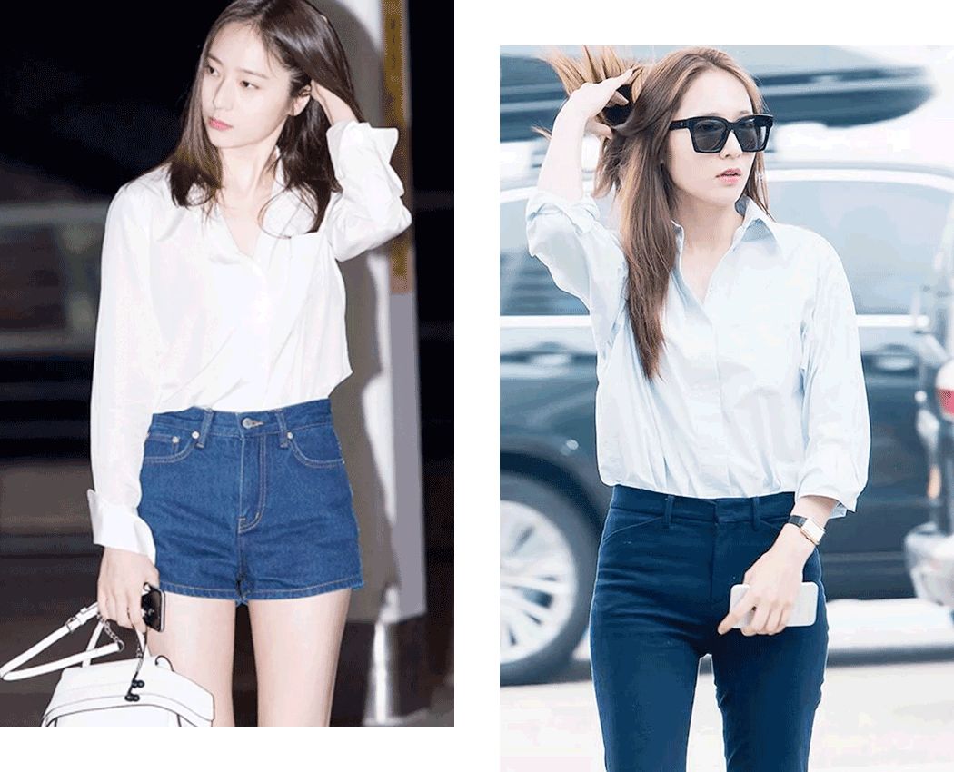 还有款式颜色很干净的衬衫塞裤腰里穿,简单利落,显高又精神。