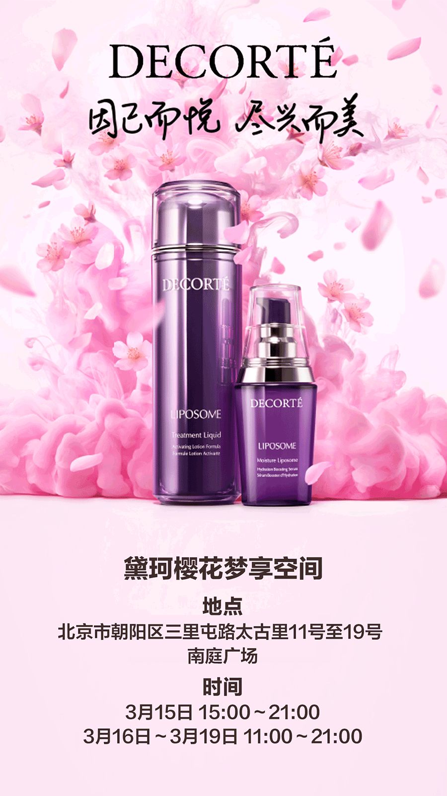 还可以在里面尽情玩各种有意思的互动活动,试用黛珂的产品哦。地址就在北京市朝阳区三里屯路太古里11号到19号南庭广场,3月15到19号都可以去玩~