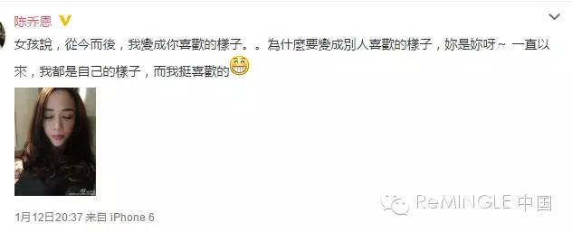 网上有句话,很流行:分开以后我变成了你喜欢的样子。但是陈乔恩却是这样说的