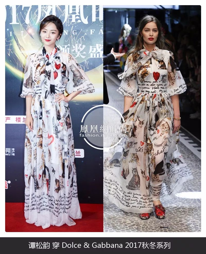 可爱小花谭松韵一改往日俏皮风,一条女神范儿的Dolce&Gabbana印花长裙她也照样能hold住,更加落落大方了。
