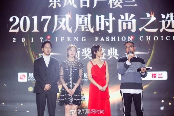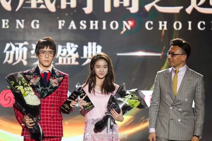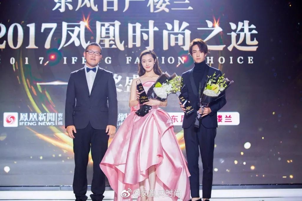 张雪迎和曾舜晞获得2017年度票选“网友最爱人气演员 ”奖项,由《时尚江湖》制片人、主持人瘦马为他们颁发奖杯