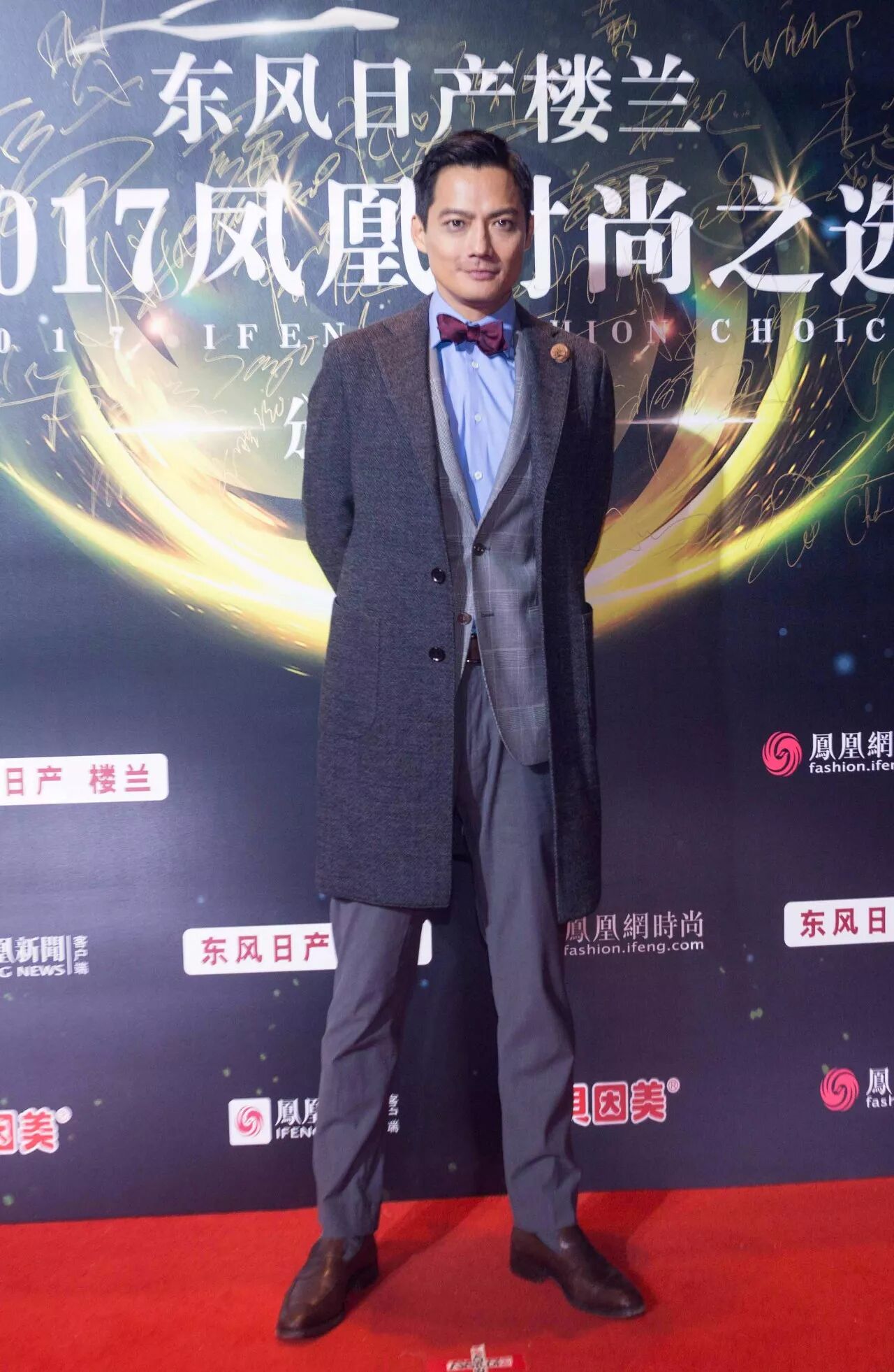 高圣远西装之外搭配灰色大衣,颇具绅士风范,酒红色领结更是衬托他好品味的利器,点睛之笔。