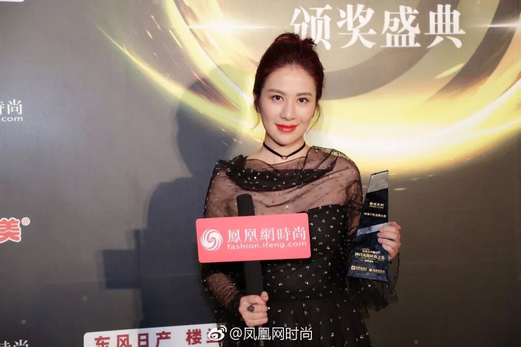 叶璇获得2017年度“时尚个性先锋”奖,由一点资讯副总裁、总编辑吴晨光为她颁发奖杯