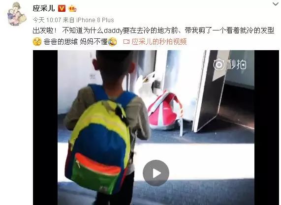 应采儿还吐槽说不懂为什么陈小春要在去一个很冷的地方前,给儿子搞这么一个看着就冷的发型。妈妈不懂爸爸带娃系列。