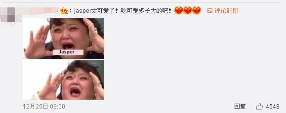 不过照片里的jasper哭得五官已经皱成了一坨,一点偶像包袱都没有了。