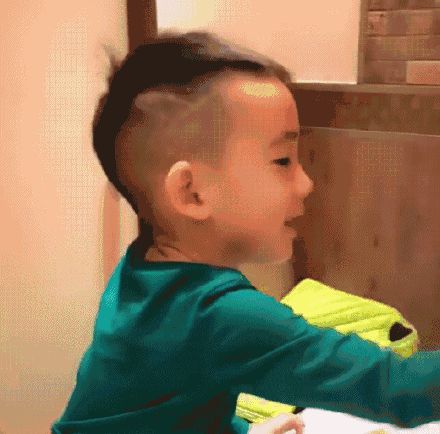 侧边剃发部位,还多了几条不规则图案,小甜椒瞬间变身小型男,妥妥的山鸡哥翻版啊!