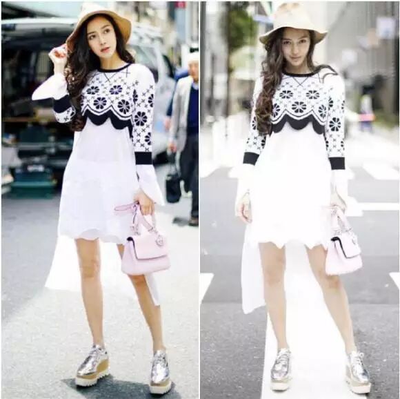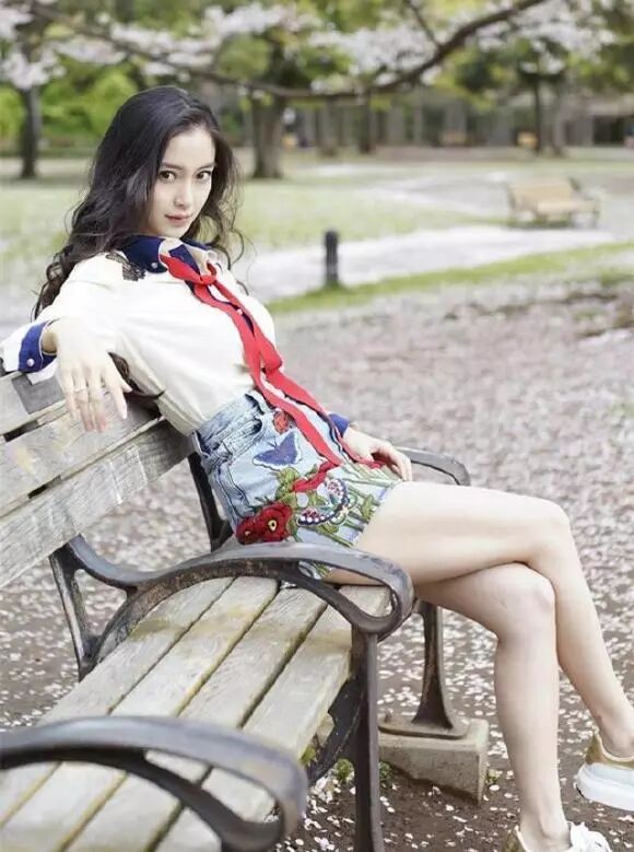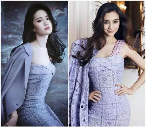 这条紫色裙子baby和刘亦菲都穿过,同样都是杂志封面,刘亦菲穿的比baby更性感撩人。baby的表情没有刘亦菲诠释的好,刘亦菲的气质更好,baby也还可以。