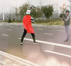 有车过来赶紧拉开正在专注拍摄的摄影师。