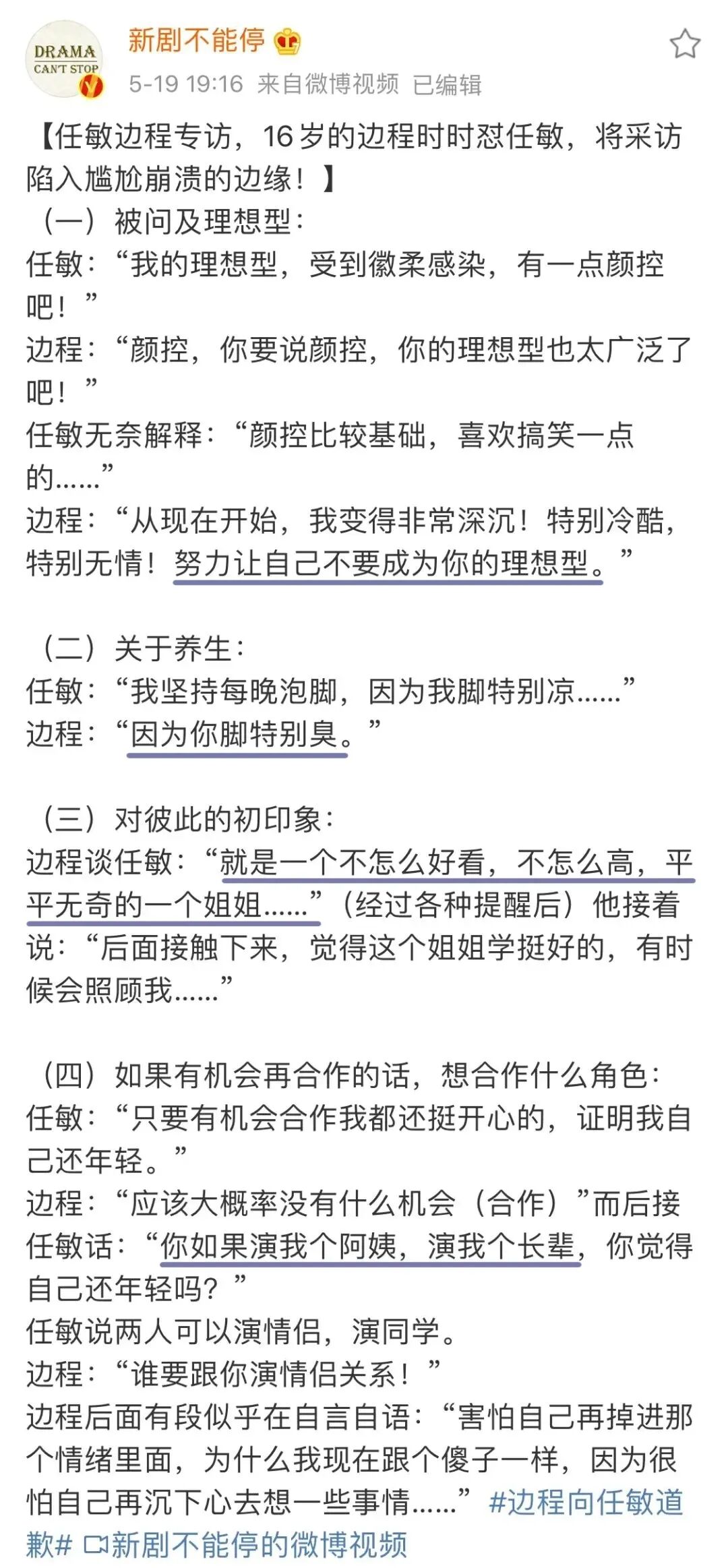(99年的任敏)可以演我(04年的边程)的长辈,一个阿姨;