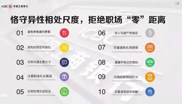 前段时间,为了防止职场性骚扰,工行对内发出了“男女德倡议”,提出了10条异性相处的准则: