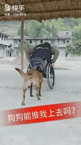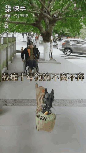 有德拿不动的篮子,妮娜叼起来跑得飞快;遇到上不去的斜坡,妮娜总会跑到轮椅后面,用头顶着轮椅,使出全身的劲儿帮有德往前走。