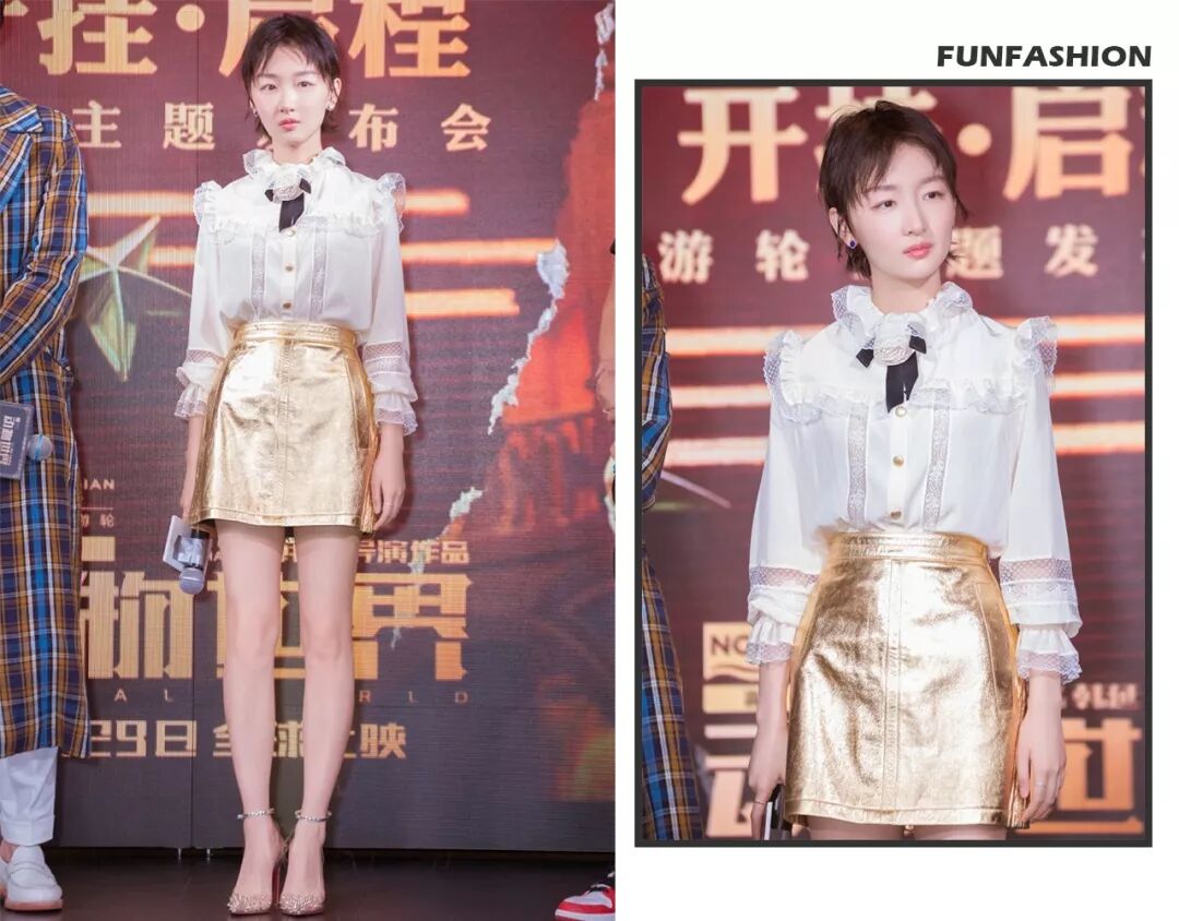 最近周冬雨开始迷恋御姐熟女风的套路,乖巧复古的荷叶边白衬衫,配上吸睛的金色A字半裙,简单又chic。各位小姐姐们夏日出街的look,都可以参考一下的嘛!