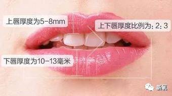 所以,唇薄精致显老,唇厚憨厚土气。最不挑人的唇厚薄应该是下面这样的:上唇厚度在5-8mm之间,下唇厚度为10-13mm之间,上下唇比例为2:3最美。