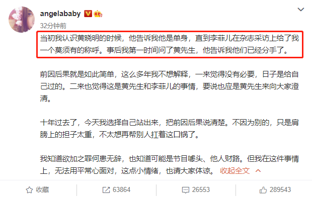 不仅开撕黄晓明前任,还公开承认不是小三。