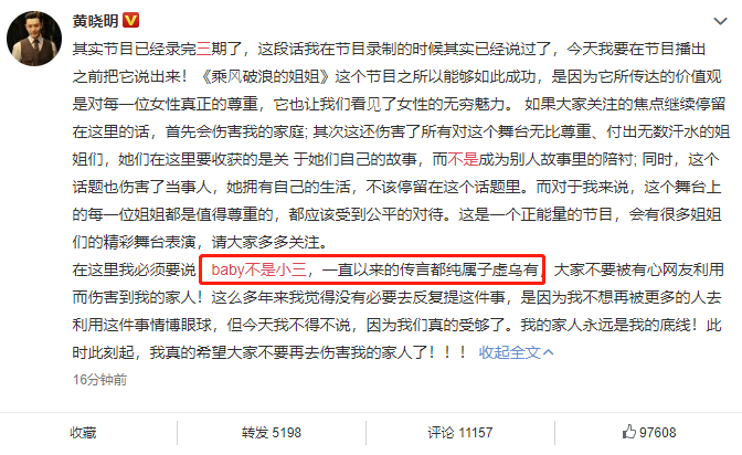 当天16分钟后,黄晓明的小作文紧跟其后。