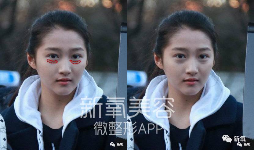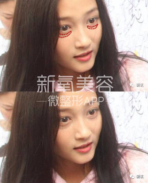 不过仔细看没有修过的图,妹纸真正眼袋的部分也是存在的。