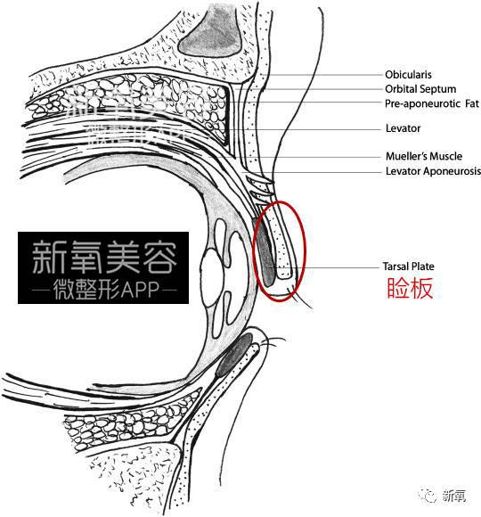 没有找到下眼睑的彩图,用黑白图来给大家替代一下。这个部位也就对应右边图片Miss Young用红色标出来的地方。