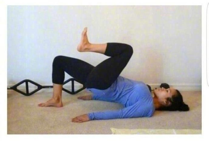 1、平躺在床上或瑜伽垫,双脚、双膝略微分开,脚掌根贴在盆骨上缘。