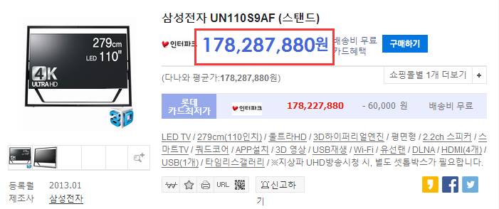 客厅中那台价值百万人民币的超大萤幕电视终于公开真面目,据悉这是由三星电子提供VVVIP订制的LED 4K ULTRA HD萤幕,支持3D、4K,售价为178,287,880韩元(约100万人民币)