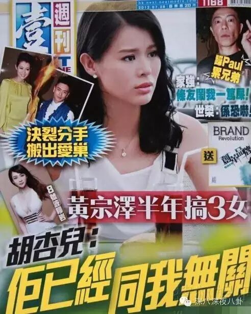 另一边黄宗泽只在去年传出比自己大8岁的港模杨峥拍拖。。还没一个月就传出分手了。。