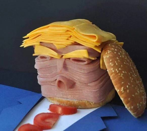 在侃爷发出推特后,有网友也调侃道,“你喜欢吃的麦当劳,应该是这样的”——麦香特朗普在此。
